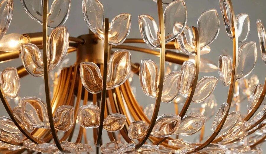 Handcrafted from steel with brass plating, Adela scatters light through its beautiful glass petals. A lovely statement for any living space, softly sculpted petals create an organic feel, while steel branches secure the canopy and provide structure to the piece.