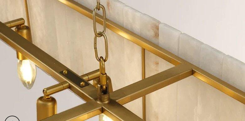 Our fixture by renowned designer Theo Eichholtz evokes the glamour of 1960s Italian lighting. Arranged within a sleek metal frame, dozens of translucent alabaster panes produce a dramatic play of light and a softly diffused glow.
