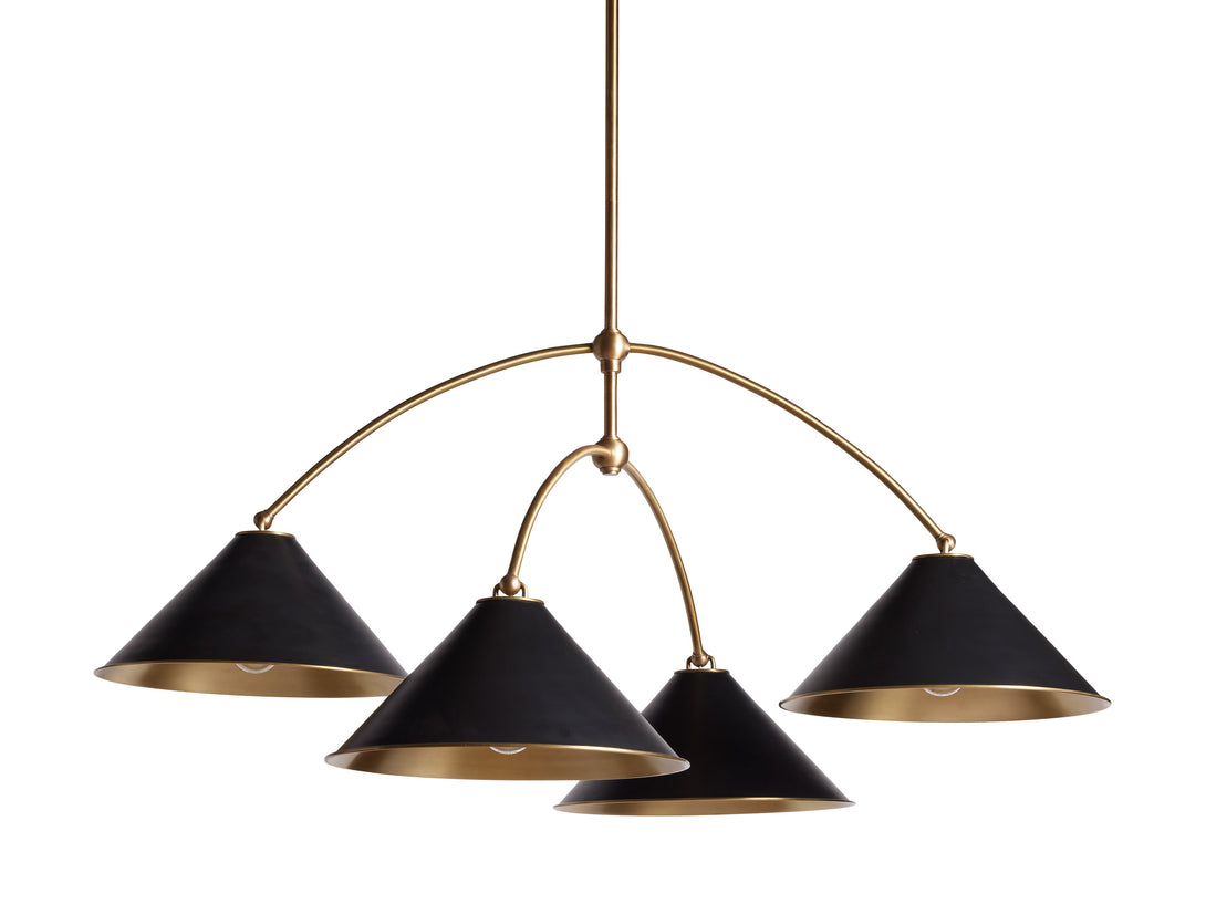 - Made from brass and iron featuring a snow-white or matte black finish on the shades with a polished brass interior.
