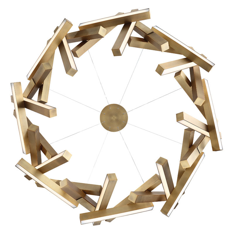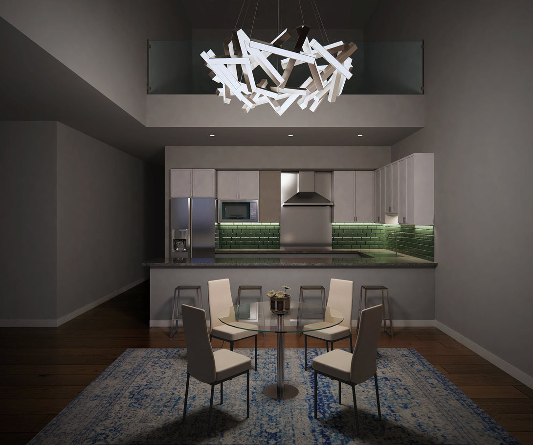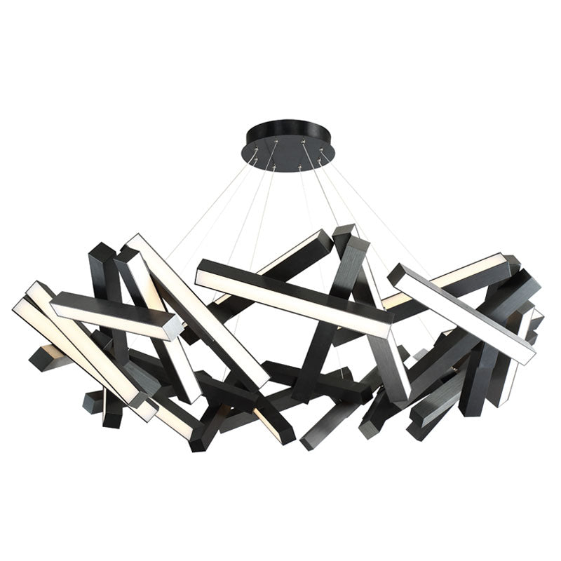 Like piano keys falling through the air, the Chaos Chandelier freezes a moment in time with breathtaking elegance. Ultra-thin powered aircraft cables stabilize the suspension, holding everything in place with as little visual interference as possible. Each section of this sculptural form is equipped with consistent, highly efficient LEDs for refined illumination throughout. Available in two sizes. Can be used on a sloped ceiling.