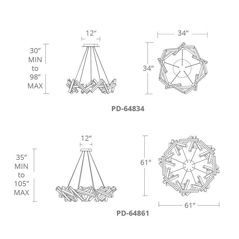 - Size: 34"W x 10"H x 34"D/61"W x 15"H x 61"D