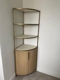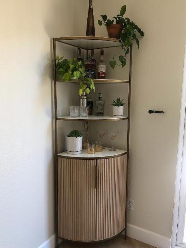 - Zinc-alloy edge pulls on each cabinet door feature a light brass finish.