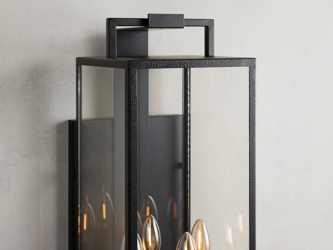 Pairing a slender frame with wide paneled glass, our Hendricks Collection creates a stately aesthetic. Crafted from hand-worked iron, Hendricks’ simple-yet-elegant design will add charming illumination to your porch, patio, and beyond.