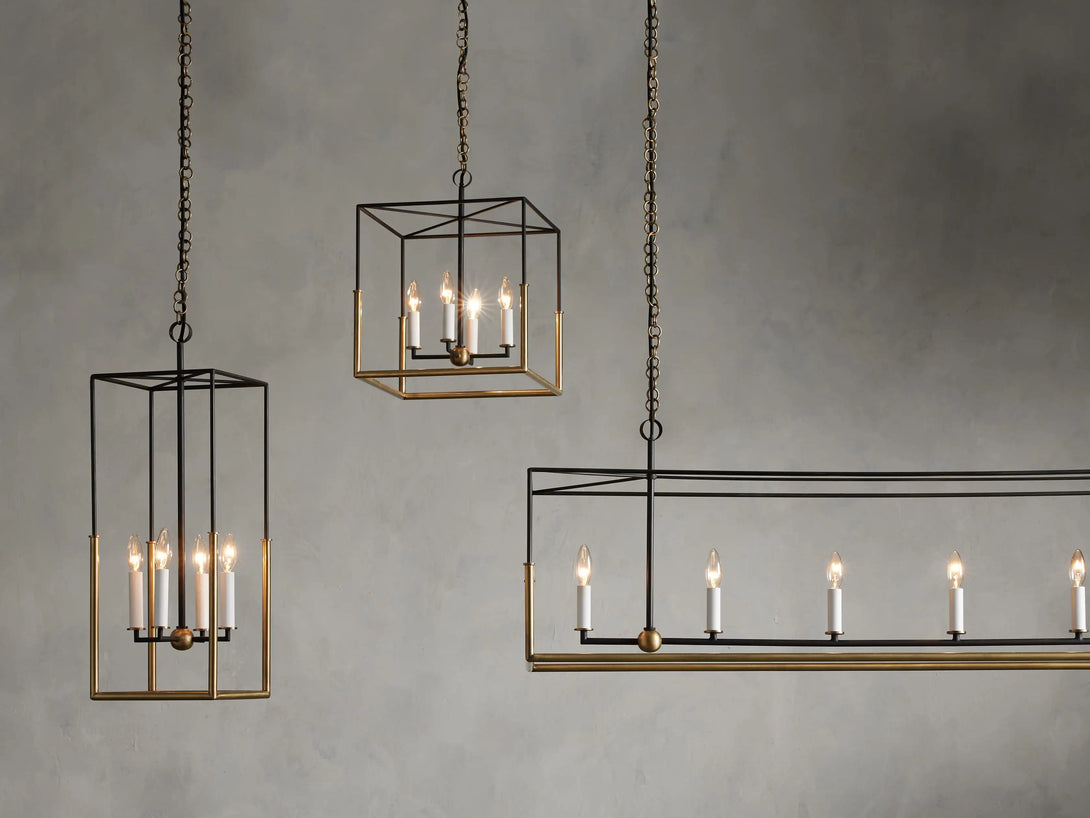 - Two-toned frames are crafted from iron with antiqued brass and black powder-coated finishes.