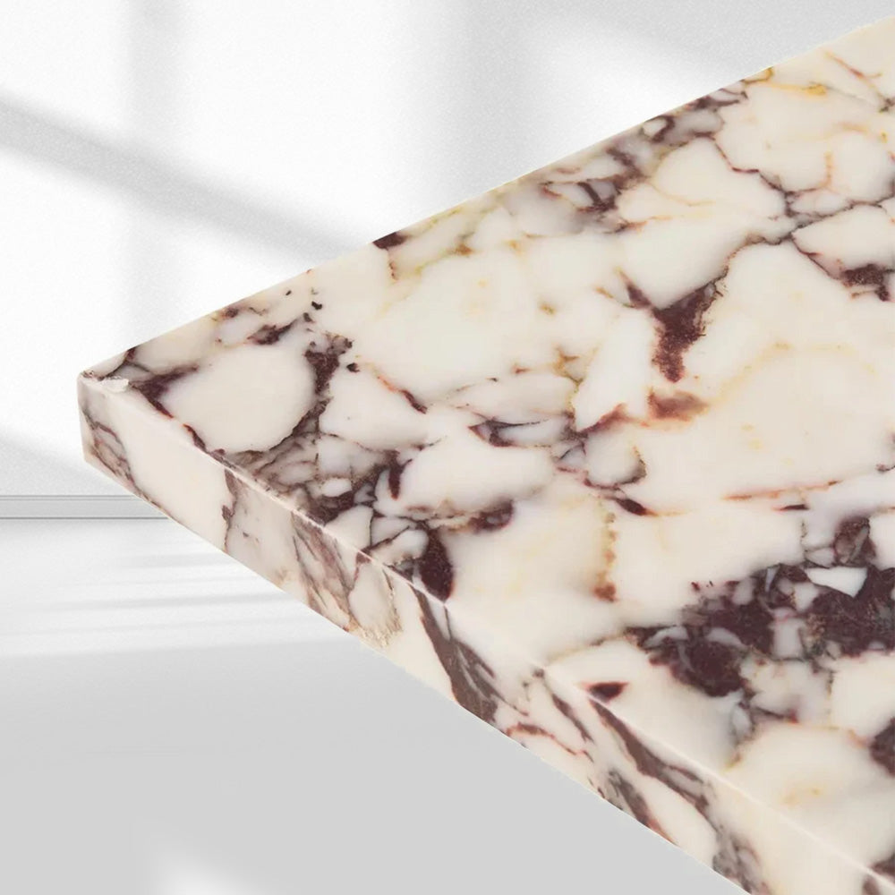 An impressive dining table certain to make a lasting impression.|Crafted to serve as an alluring centrepiece, the Khodier Dining Table stands out for its exquisite aesthetics, boasting a Calacatta Viola marble tabletop elegantly upheld by a frame crafted from plywood with an oak veneer finish. The fusion of marble and oak veneer captures the essence of natural beauty. With its generous proportions, this table is ideal for hosting gatherings. Marble is a natural material, and Coco Republic advises that distinctive variations in veining, markings and colours can be expected as standard, and do not compromise the integrity of the stone. Each piece is one-of-a-kind.