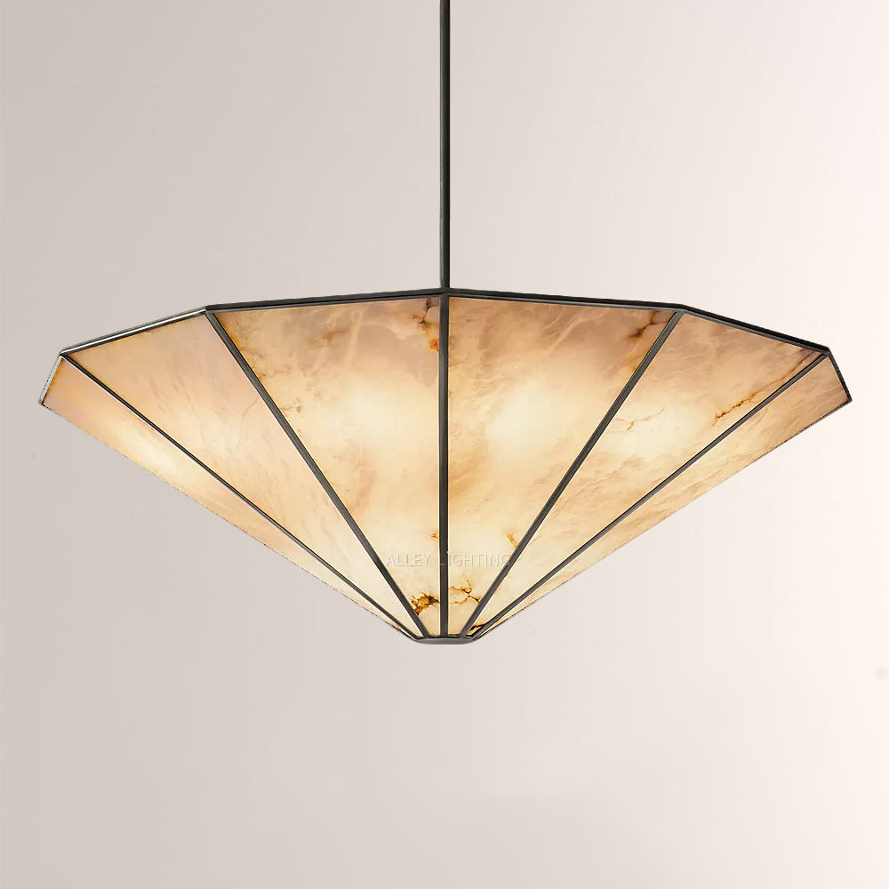 Evoking the refined glamor and bold geometry of Art Deco lighting, Lucette by Paris-based architect and designerfeatures indivi dually framed solid alabaster panels. A warm glow through the translucent stone highlights the unique veining and coloration of each piece.