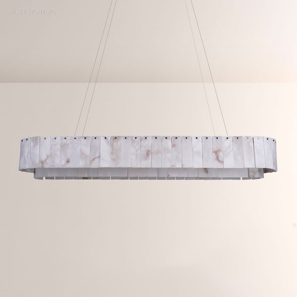 This exquisite chandelier features layered alabaster marble panels paired with a brass - finished canopy, blending natural elegance and modern luxury. It’s a perfect statement piece for upscale American dining rooms, living spaces, or entryways, casting a warm, diffused glow that elevates the ambiance with refined artistry.