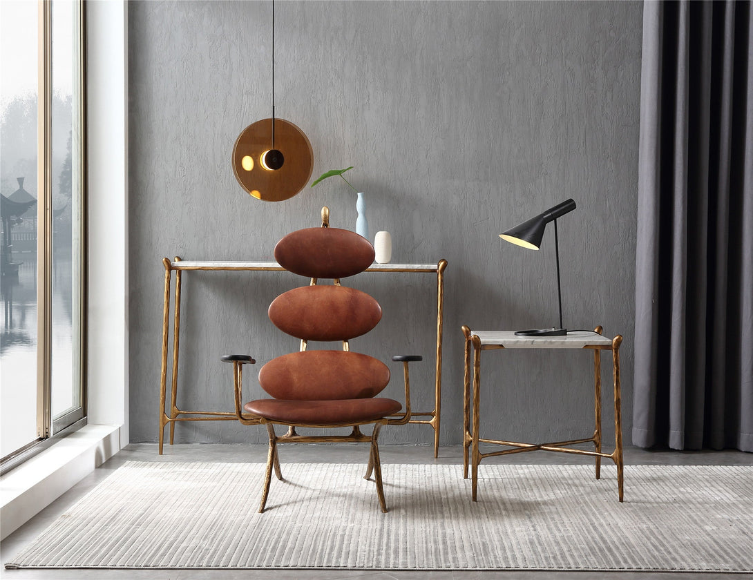 Thaddeus High Back Brown Leather Lounge Accent Chair